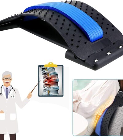 Back Stretching Device,Back Massager for Bed & Chair & Car,Multi-Level Lumbar Support Stretcher Spinal, Lower and Upper Muscle Pain Relief(Black/Blue,Non toxic)
