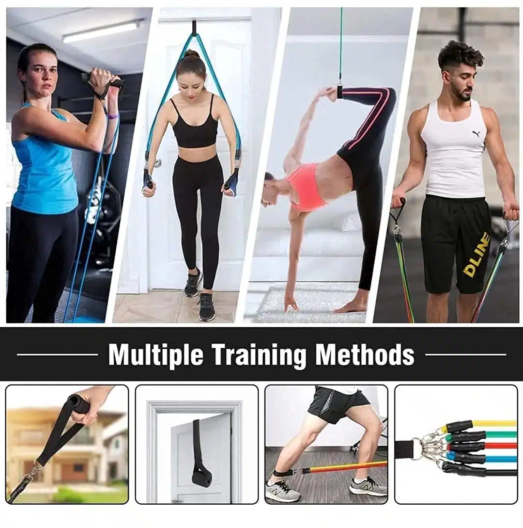 • HIGH QUALITY MATERIAL WORKOUT BAND|EXERCISE EQUIPMENT FOR HOME|GYM SET: Each resistance tubes set is carefully constructed to prevent breakage.Strong wear resistance and perfect elasticity, steel metal buckle stronger, non-slip comfortable handle to ensure durability.Combine different tubes to tone your arms, back, buttocks, shoulders, chest, glutes, legs and wrist, achieving good strength or slim.Excellent home workout equipments|home gym equipment|Fitness equipment|elastic bands for exercise